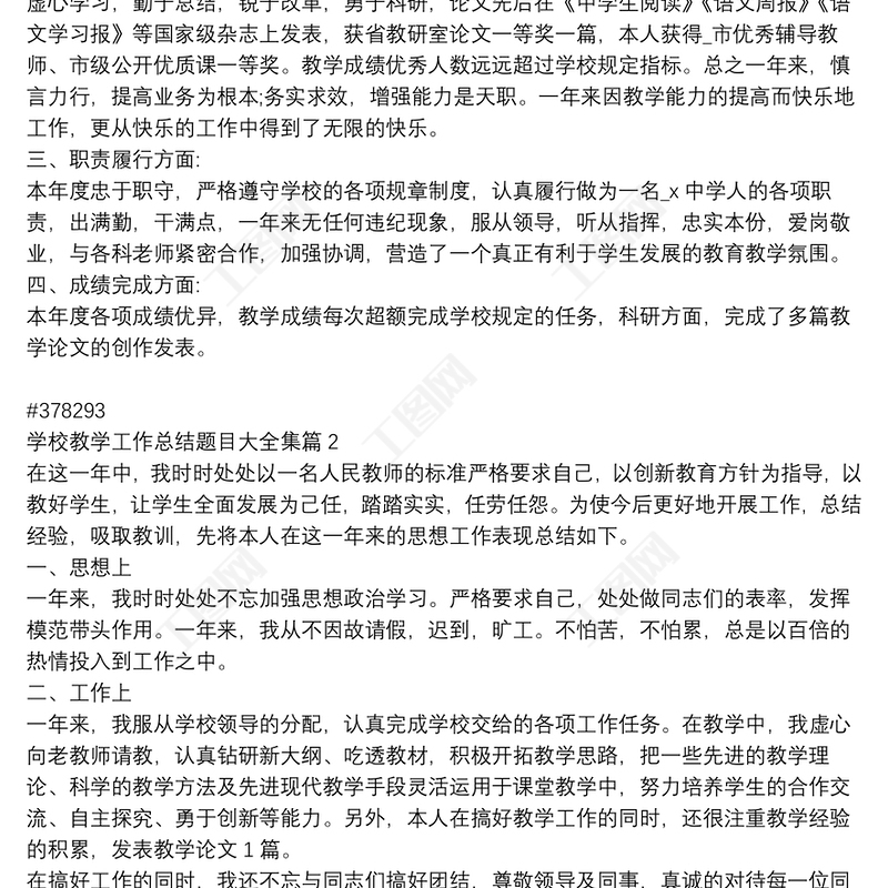 工圖網(wǎng)提供學(xué)校教學(xué)工作總結(jié)題目大全集13篇供會員免費下載。更多精彩黨課PPT素材,盡在工圖網(wǎng)。