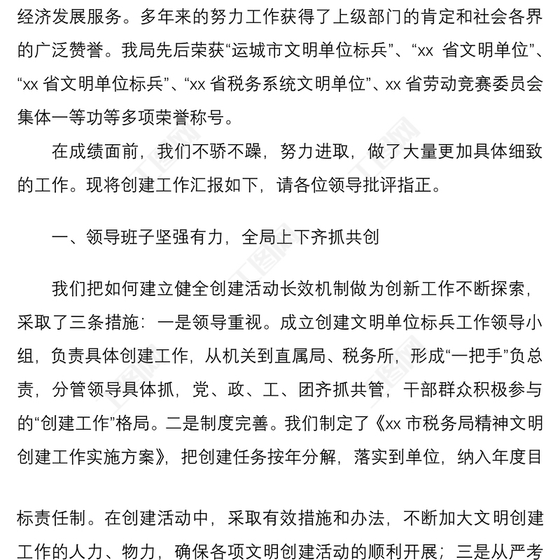 > 經(jīng)驗事跡 > 2021稅務(wù)局創(chuàng)建省級文明單位標(biāo)兵工作匯報材料范文工作經(jīng)驗申報材料工作報告總結(jié).DOCX 【圖片、文字、動畫均可編輯】