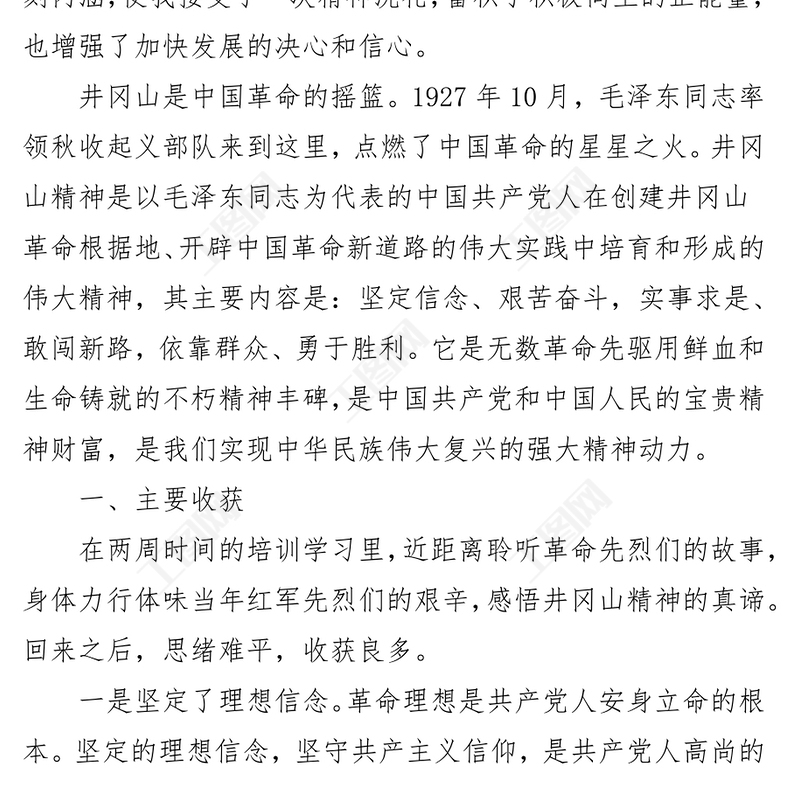 工圖網(wǎng)提供黨史學(xué)習(xí)教育井岡山學(xué)習(xí)培訓(xùn)心得體會(huì)供會(huì)員免費(fèi)下載。更多精彩黨課PPT素材,盡在工圖網(wǎng)。