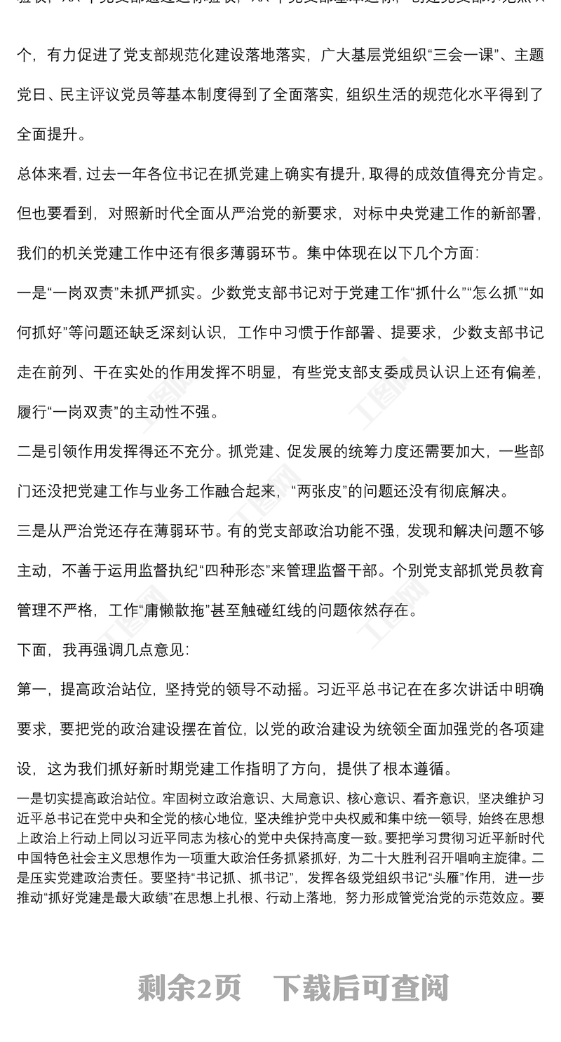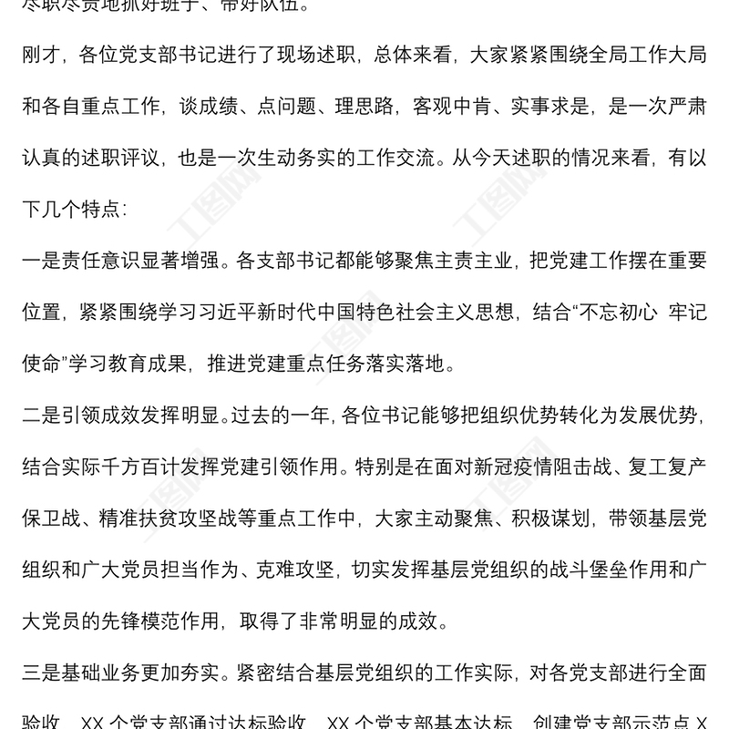 2021年度黨支部書記抓黨建工作述職評(píng)議會(huì)上的總結(jié)點(diǎn)評(píng)講話范文公司國(guó)企國(guó)有企業(yè)會(huì)議包含