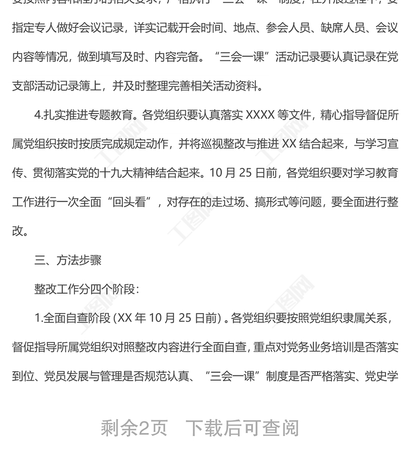 工圖網(wǎng)提供“三會(huì)一課”整改方案供會(huì)員免費(fèi)下載。更多精彩黨課PPT素材,盡在工圖網(wǎng)。