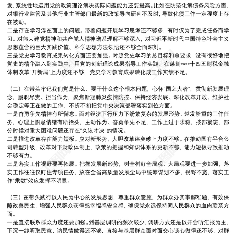 常務(wù)副市長黨史學(xué)習(xí)教育五個帶頭專題民主生活會對照檢查材料 Array