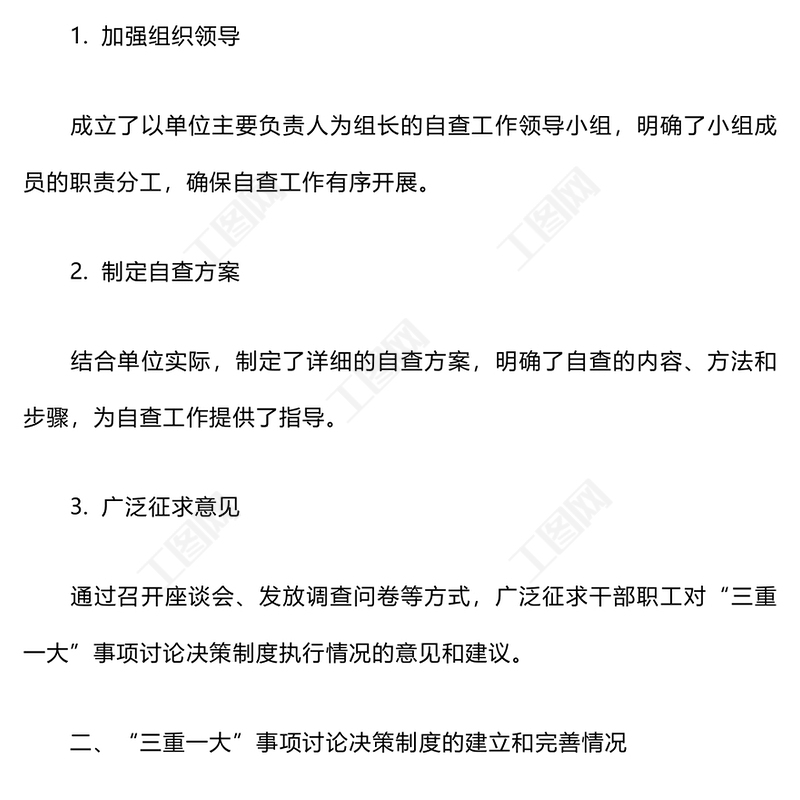 工圖網(wǎng)提供“三重一大”事項(xiàng)決策制度執(zhí)行情況自查報(bào)告范文供會(huì)員免費(fèi)下載。更多精彩黨課PPT素材,盡在工圖網(wǎng)。