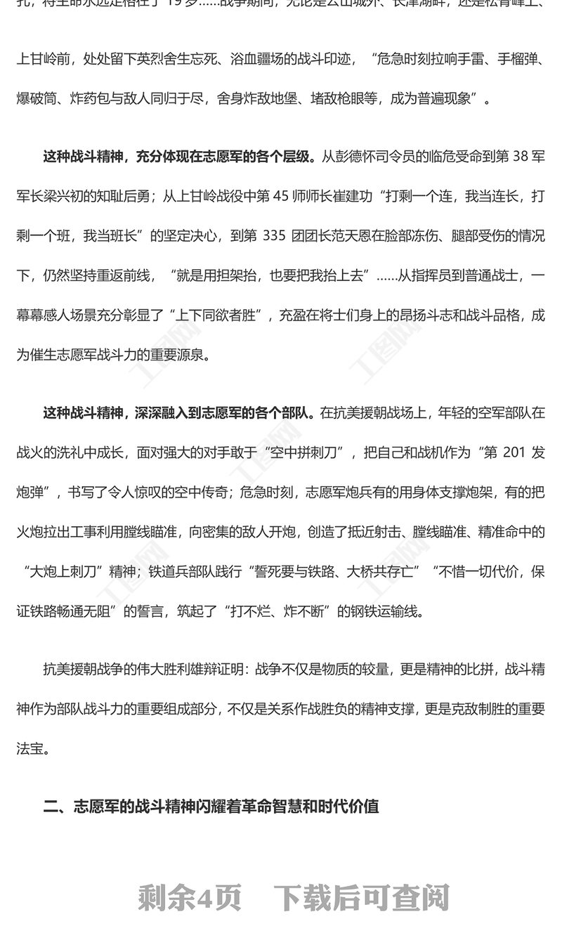 > 黨課講稿 > 2023勝負(fù)之征精神先見ppt大氣精美風(fēng)從抗美援朝戰(zhàn)爭(zhēng)勝利看戰(zhàn)斗精神培育軍隊(duì)黨組織黨員黨課培訓(xùn)專題課件(講稿).DOCX 【圖片、文字、動(dòng)畫均可編輯】