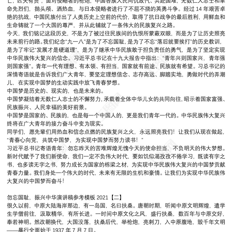 勿忘國恥,振興中華演講稿參考模板2021 Array