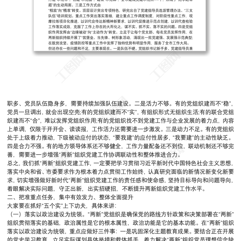在全市“兩新”組織黨建工作推進(jìn)會(huì)上的總結(jié)講話