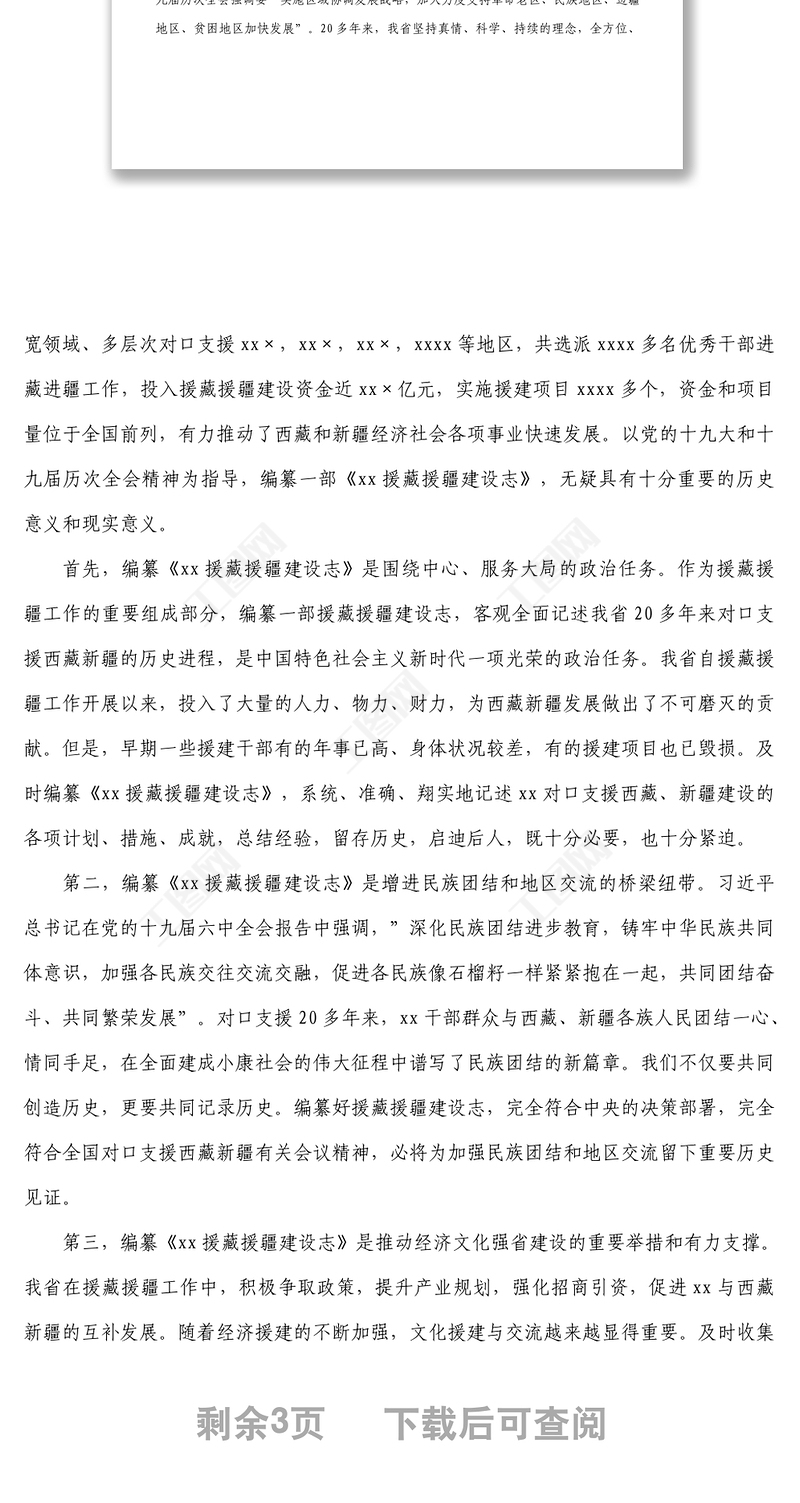 在援藏援疆建設(shè)志編纂工作會(huì)議上的講話