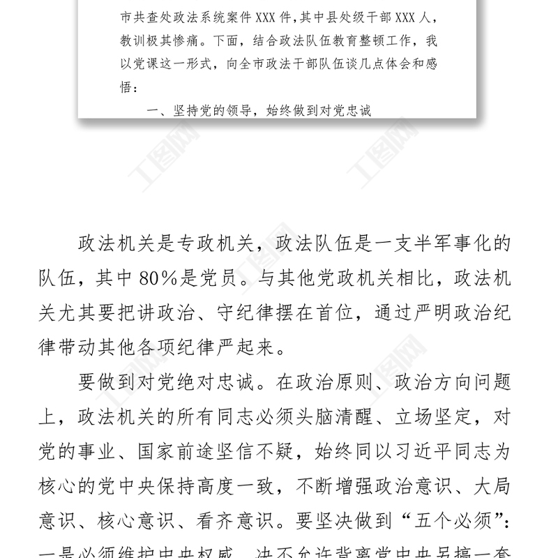工圖網(wǎng)提供黨課講稿:政法隊(duì)伍教育整頓工作體會(huì)和感悟供會(huì)員免費(fèi)下載。更多精彩黨課PPT素材,盡在工圖網(wǎng)。