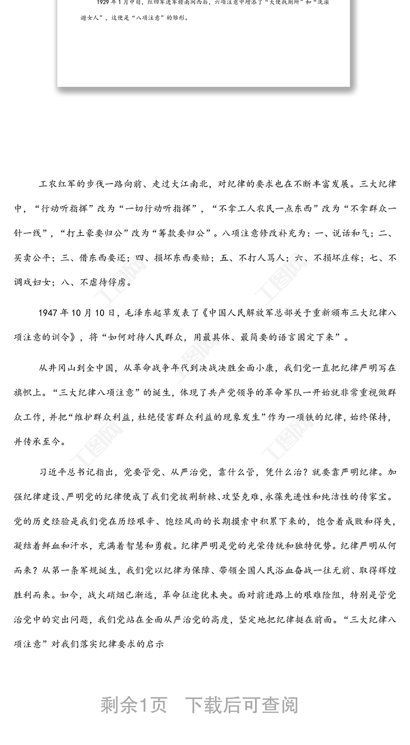 工圖網(wǎng)提供“三大紀(jì)律八項(xiàng)注意”的回望及思考供會(huì)員免費(fèi)下載。更多精彩黨課PPT素材,盡在工圖網(wǎng)。