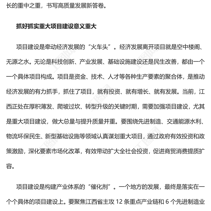 > 黨課講稿 > 2023全力抓好重大項(xiàng)目建設(shè)書寫高質(zhì)量發(fā)展新答卷PPT大氣精美風(fēng)黨員干部學(xué)習(xí)教育專題黨課課件(講稿).DOCX 【圖片、文字、動(dòng)畫均可編輯】