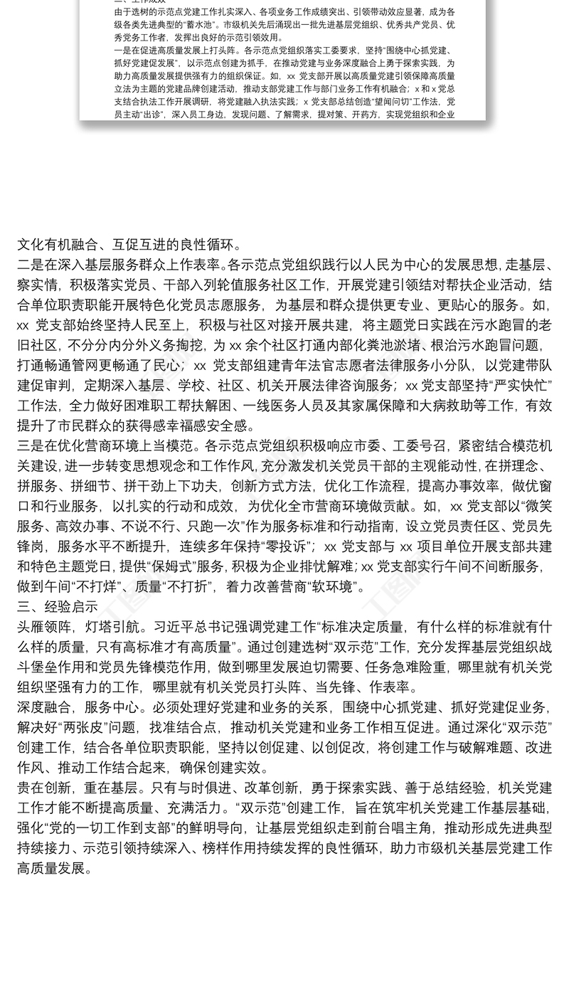 > 交流研討座談 > 機(jī)關(guān)黨建工作經(jīng)驗(yàn)研討材料:樹典型示范引領(lǐng) 促黨建質(zhì)量提升.DOCX 【圖片、文字、動(dòng)畫均可編輯】