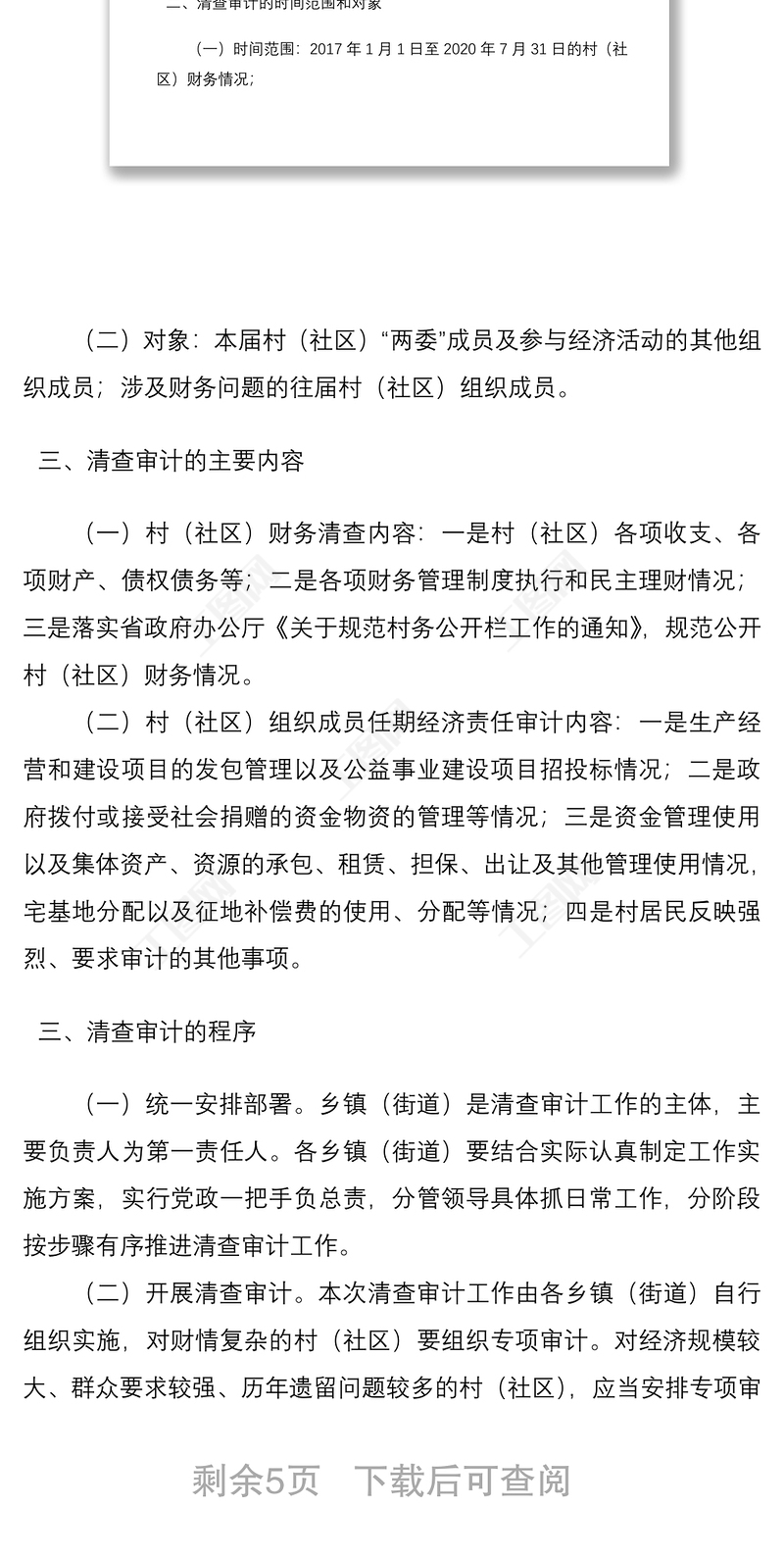 > 計(jì)劃方案 > 2021X區(qū)關(guān)于開(kāi)展村級(jí)財(cái)務(wù)清查審計(jì)工作實(shí)施方案.DOCX 【圖片、文字、動(dòng)畫(huà)均可編輯】