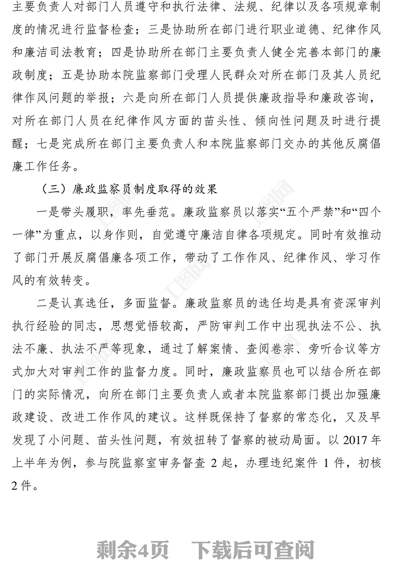 【調(diào)研報(bào)告】基層人民法院如何發(fā)揮廉政監(jiān)察員作用的調(diào)研報(bào)告 Array