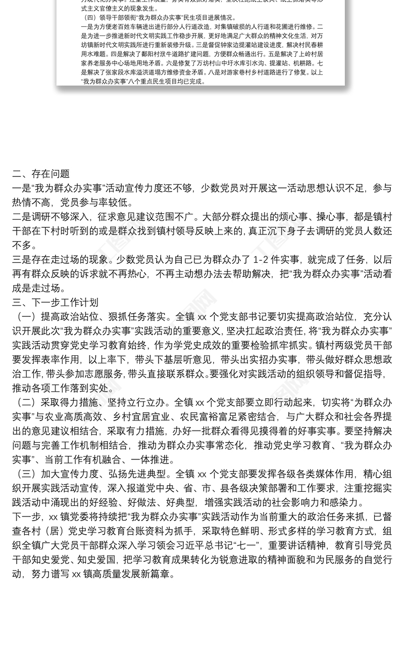 鎮(zhèn)關(guān)于“我為群眾辦實事”實踐活動工作總結(jié)及下步工作計劃