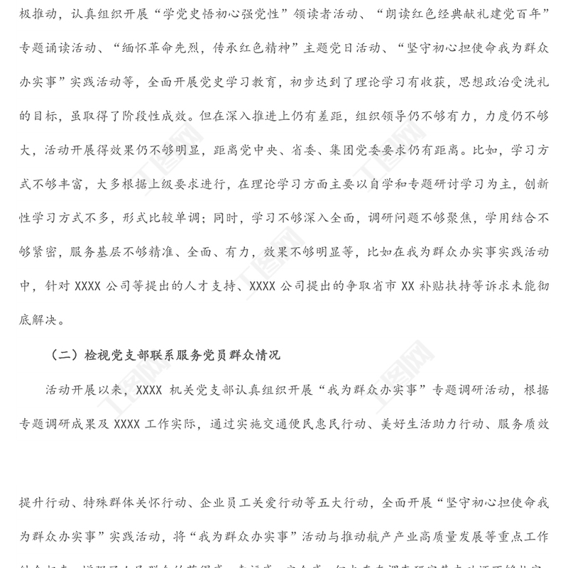 首頁 > WORD文檔 > 對(duì)照檢查 > 黨史學(xué)習(xí)教育專題組織生活會(huì)領(lǐng)導(dǎo)班子對(duì)照檢查材料(集團(tuán)公司基層黨支部).DOCX 【圖片、文字、動(dòng)畫均可編輯】