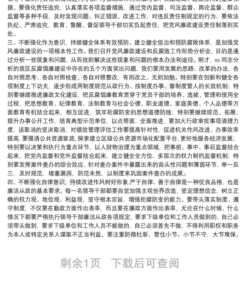區(qū)委書記在全區(qū)黨風(fēng)廉政建設(shè)和反腐敗工作形勢(shì)分析會(huì)上的講話提綱