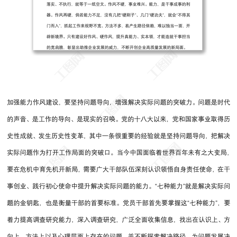 工圖網(wǎng)提供作風(fēng)能力建設(shè)專(zhuān)題學(xué)習(xí)研討會(huì)發(fā)言材料供會(huì)員免費(fèi)下載。更多精彩黨課PPT素材,盡在工圖網(wǎng)。