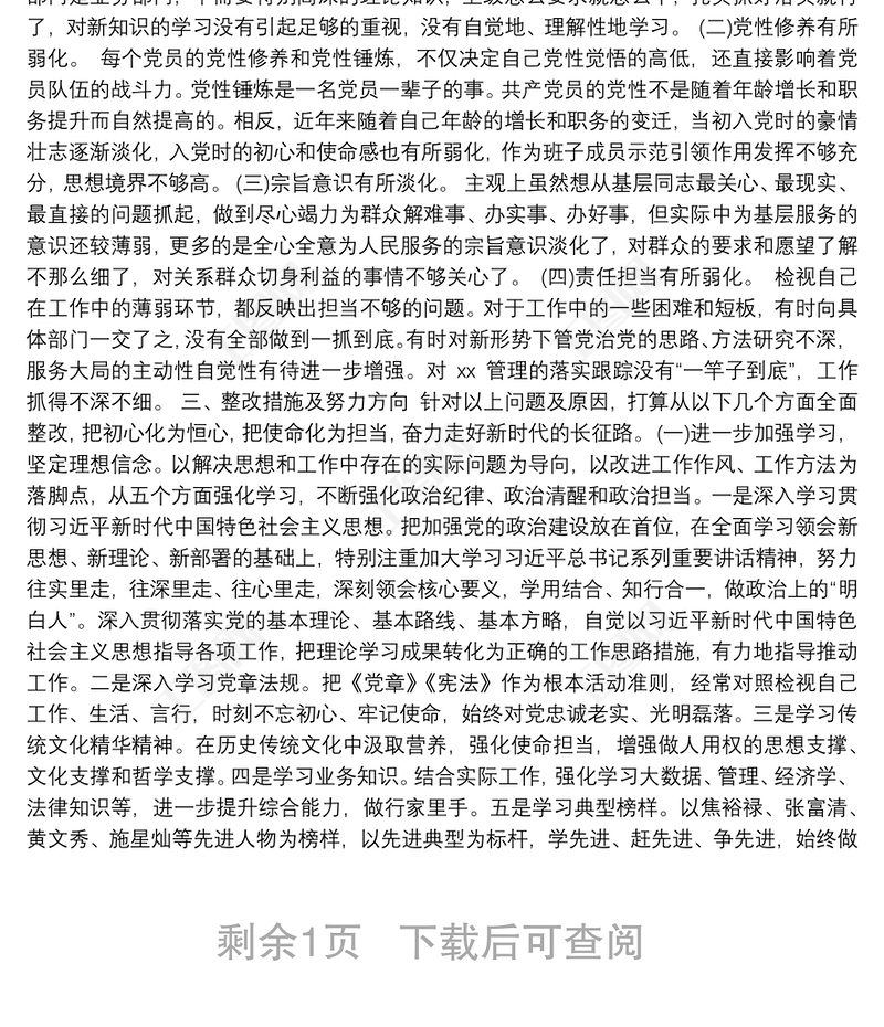 第二批“不忘初心、牢記使命”主題教育:民主生活會個(gè)人檢視剖析材料