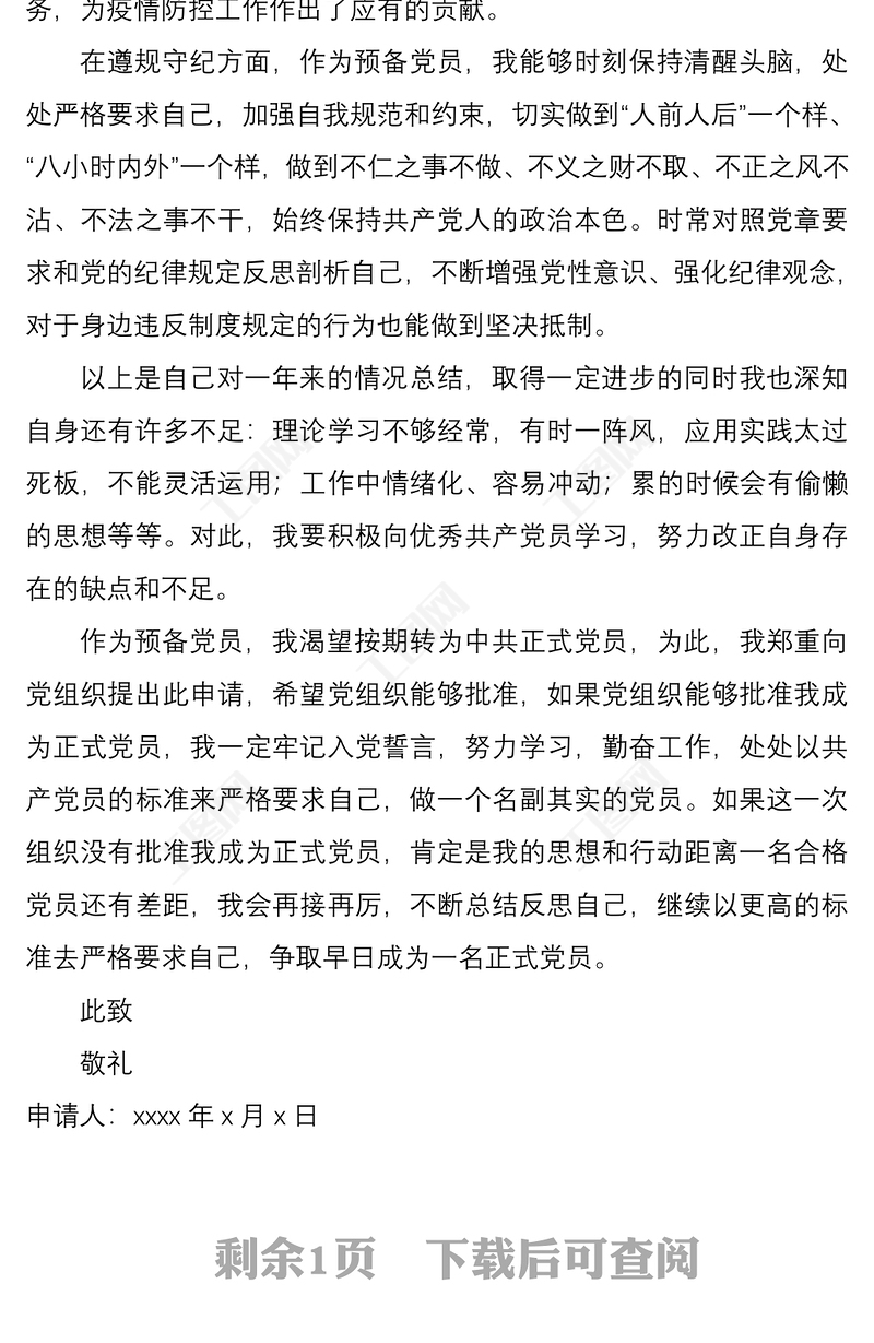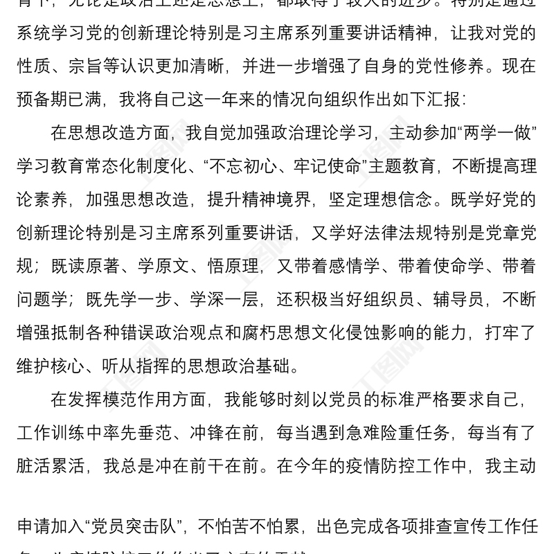 2021年公務(wù)員預(yù)備黨員轉(zhuǎn)正申請書范例(含封面)包含