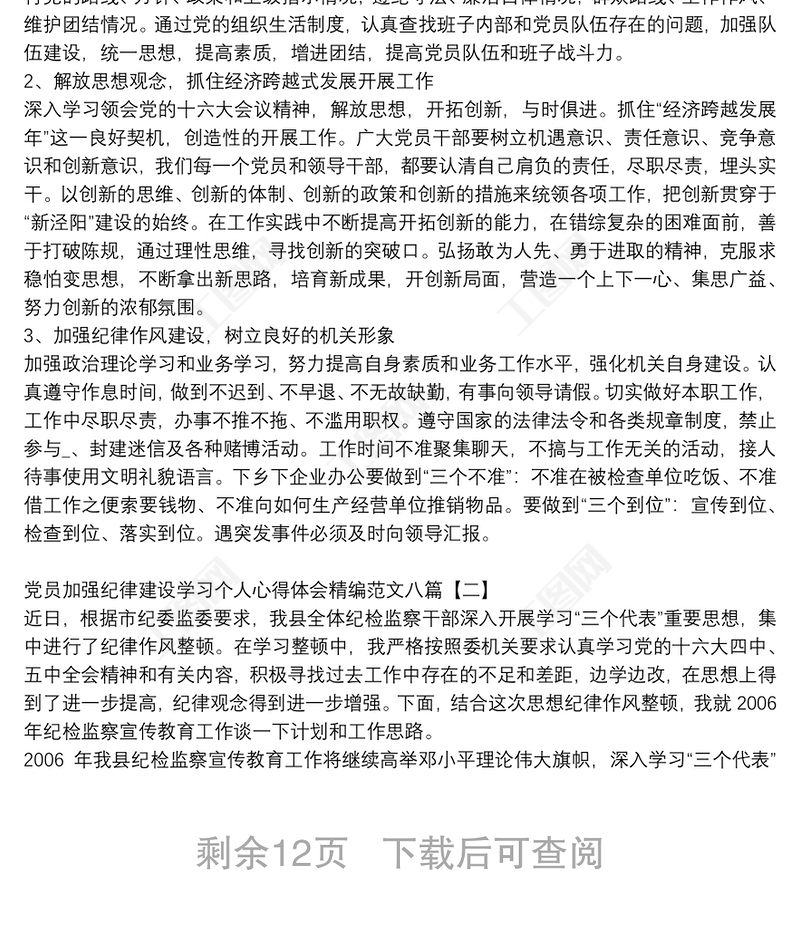 工圖網(wǎng)提供黨員加強(qiáng)紀(jì)律建設(shè)學(xué)習(xí)個(gè)人心得體會(huì)精編范文八篇供會(huì)員免費(fèi)下載。更多精彩黨課PPT素材,盡在工圖網(wǎng)。