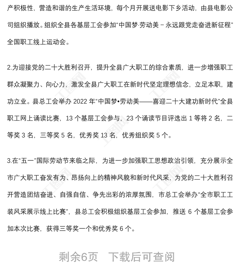 工圖網(wǎng)提供縣總工會(huì)2022年上半年工作總結(jié)供會(huì)員免費(fèi)下載。更多精彩黨課PPT素材,盡在工圖網(wǎng)。