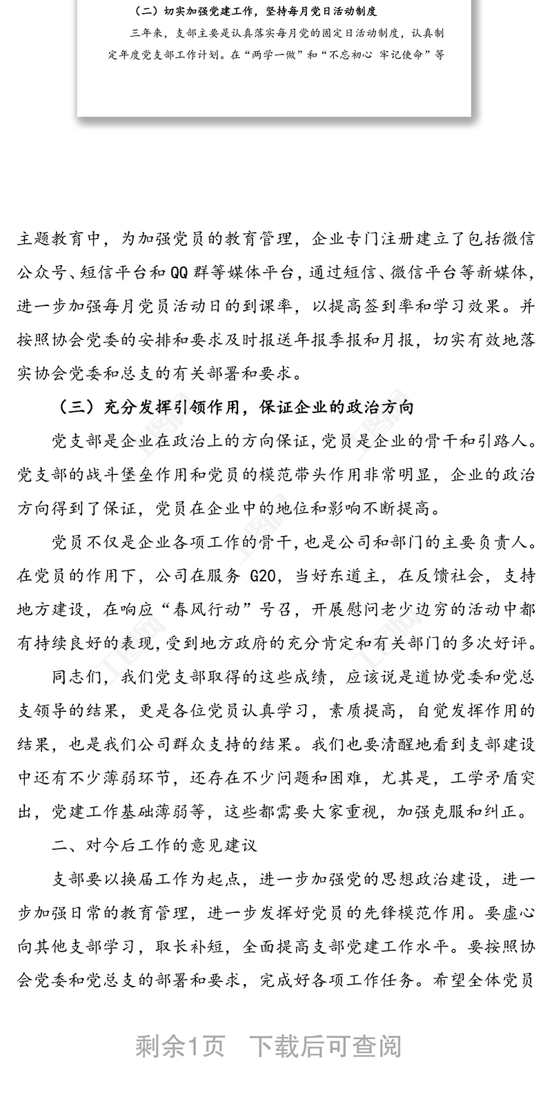 公司黨支部換屆工作報告(集團公司企業(yè)支部換屆報告)