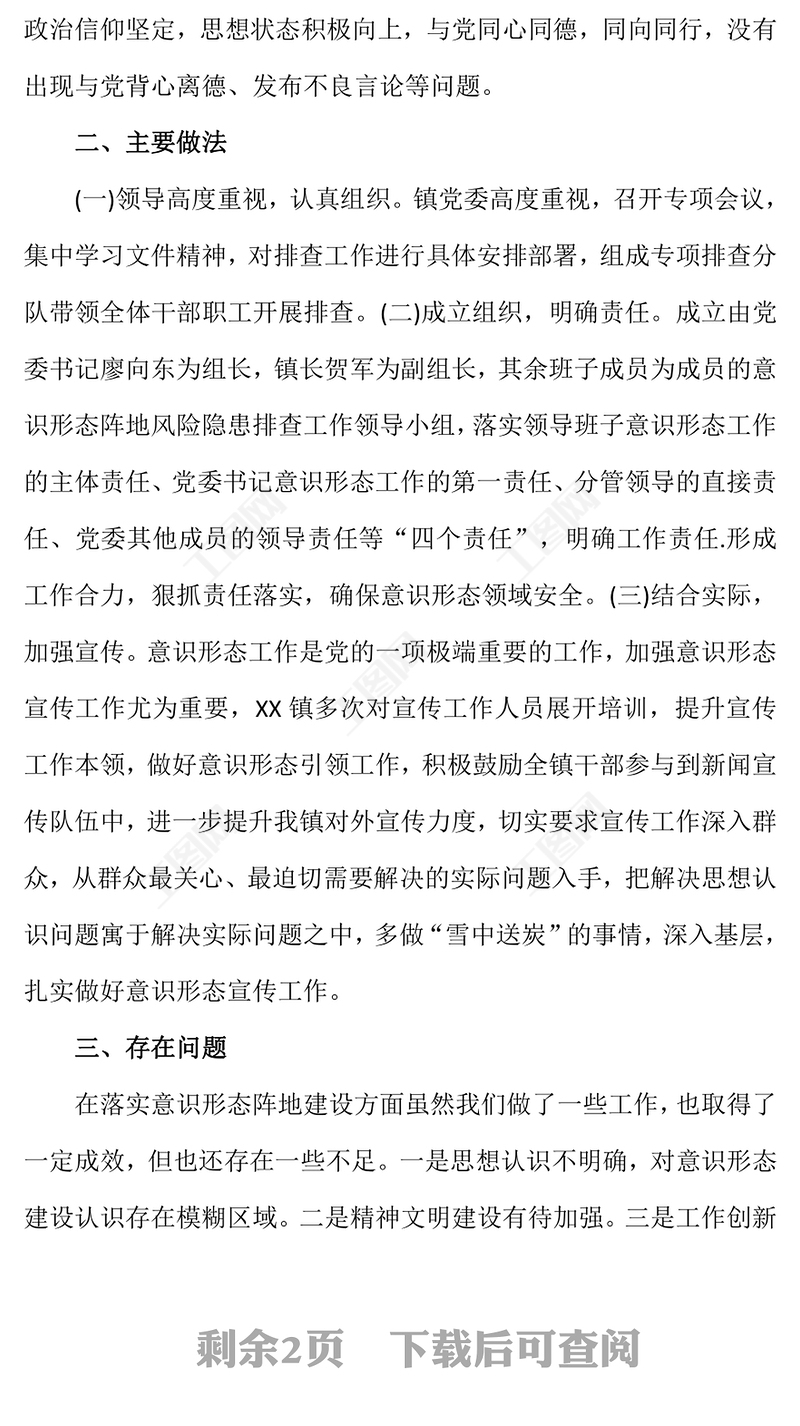 2022年精美實用鄉(xiāng)鎮(zhèn)意識形態(tài)領域風險隱患排查情況報告PPT模板 Array