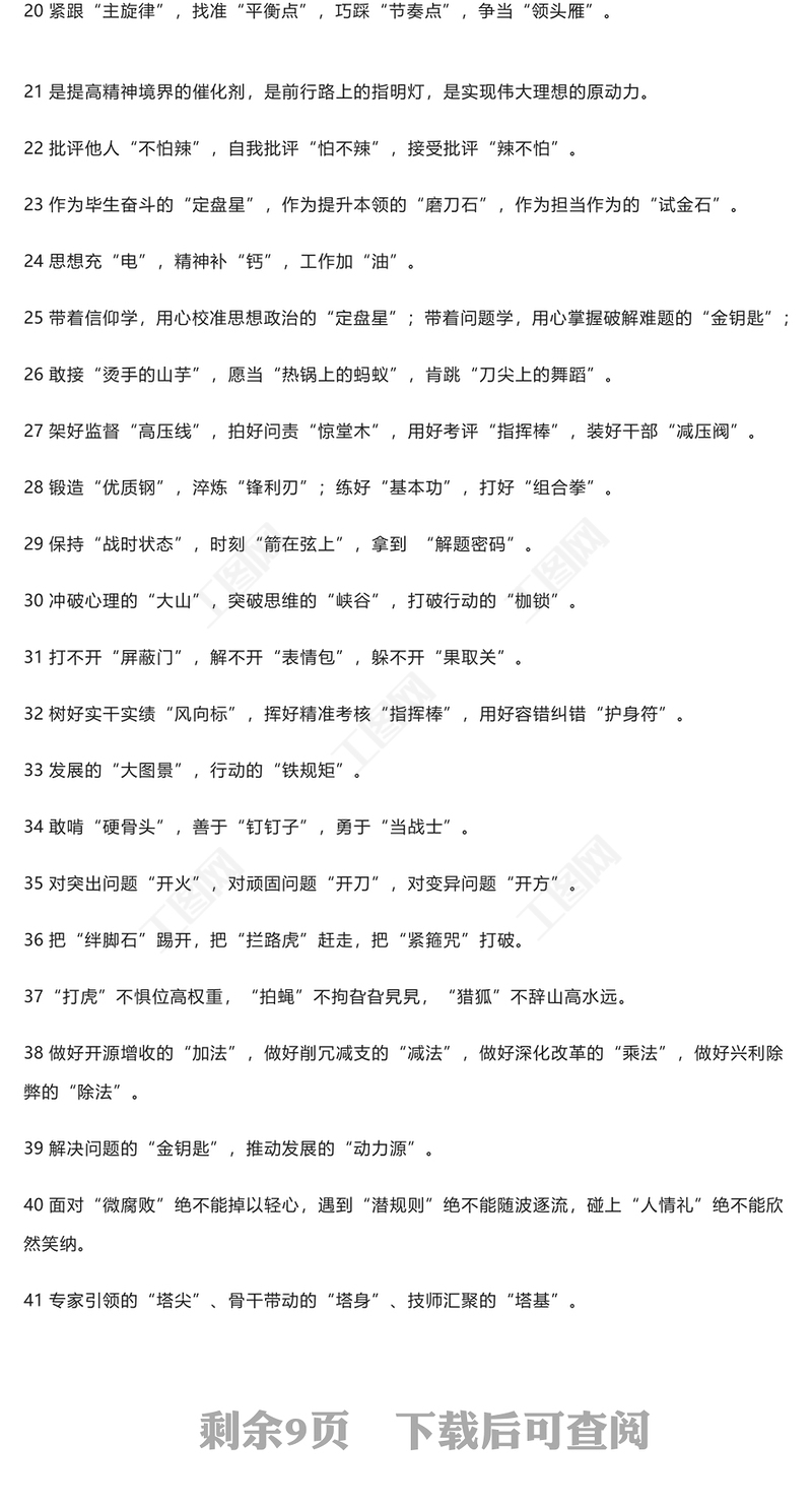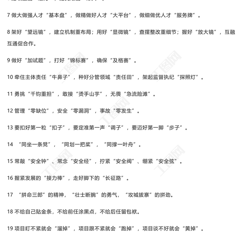 工圖網(wǎng)提供領(lǐng)導(dǎo)講話材料中最接地氣的比喻類排比句200例收藏備用供會(huì)員免費(fèi)下載。更多精彩黨課PPT素材,盡在工圖網(wǎng)。