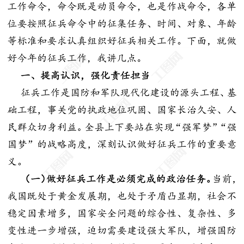 工圖網(wǎng)提供在全縣征兵工作會議上的講話(1)供會員免費(fèi)下載。更多精彩黨課PPT素材,盡在工圖網(wǎng)。