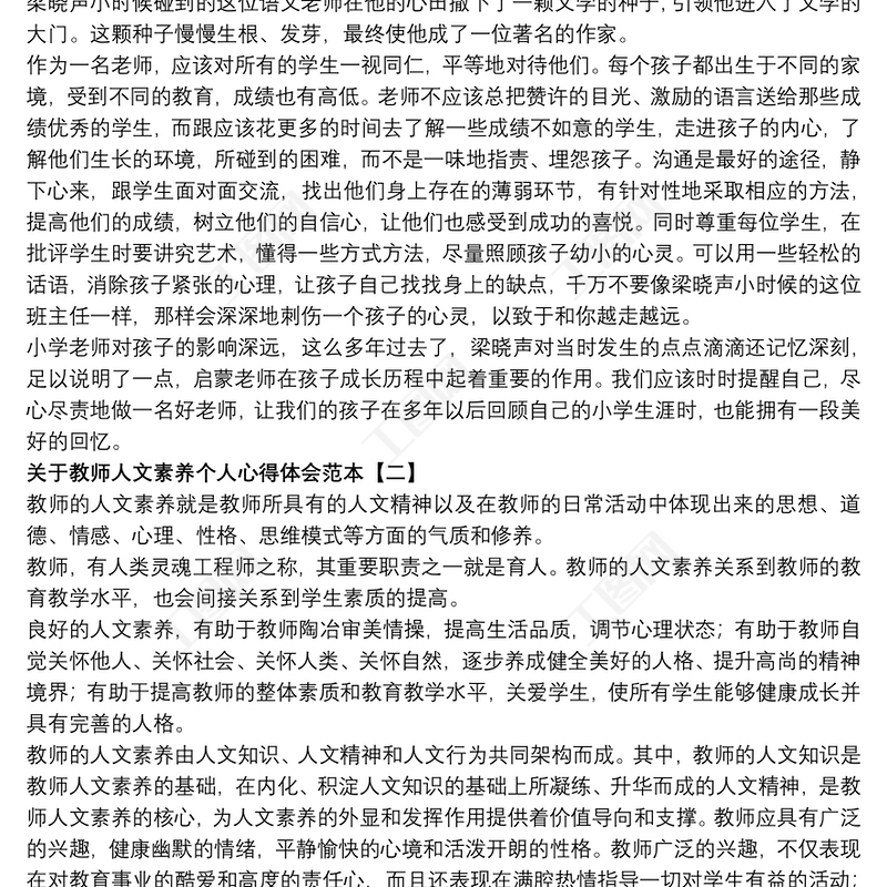 關(guān)于教師人文素養(yǎng)個人心得體會范本 Array