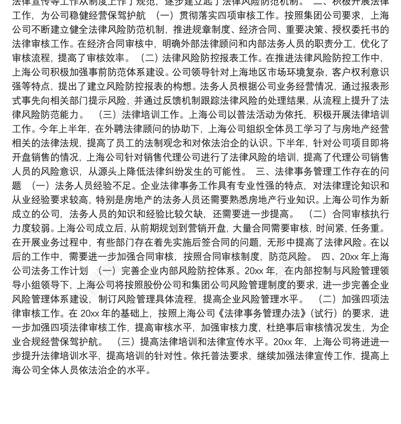公司法務(wù)部工作總結(jié)報(bào)告