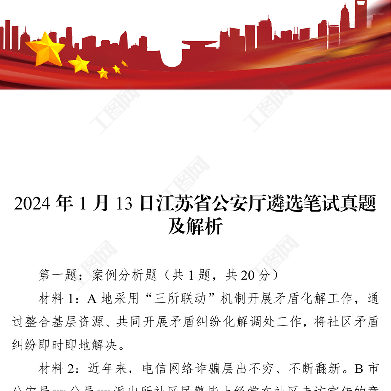 工圖網(wǎng)提供2024年1月13日江蘇省公安廳遴選筆試真題及解析供會(huì)員免費(fèi)下載。更多精彩黨課PPT素材,盡在工圖網(wǎng)。