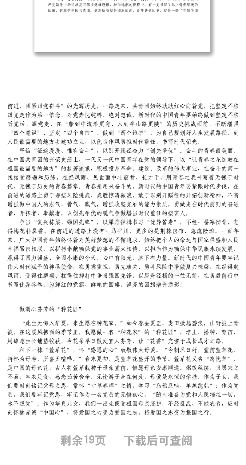 工圖網(wǎng)提供學(xué)習(xí)在中國共產(chǎn)主義青年團(tuán)成立100周年上的重要講話心得體會研討發(fā)言匯編17篇供會員免費(fèi)下載。更多精彩黨課PPT素材,盡在工圖網(wǎng)。