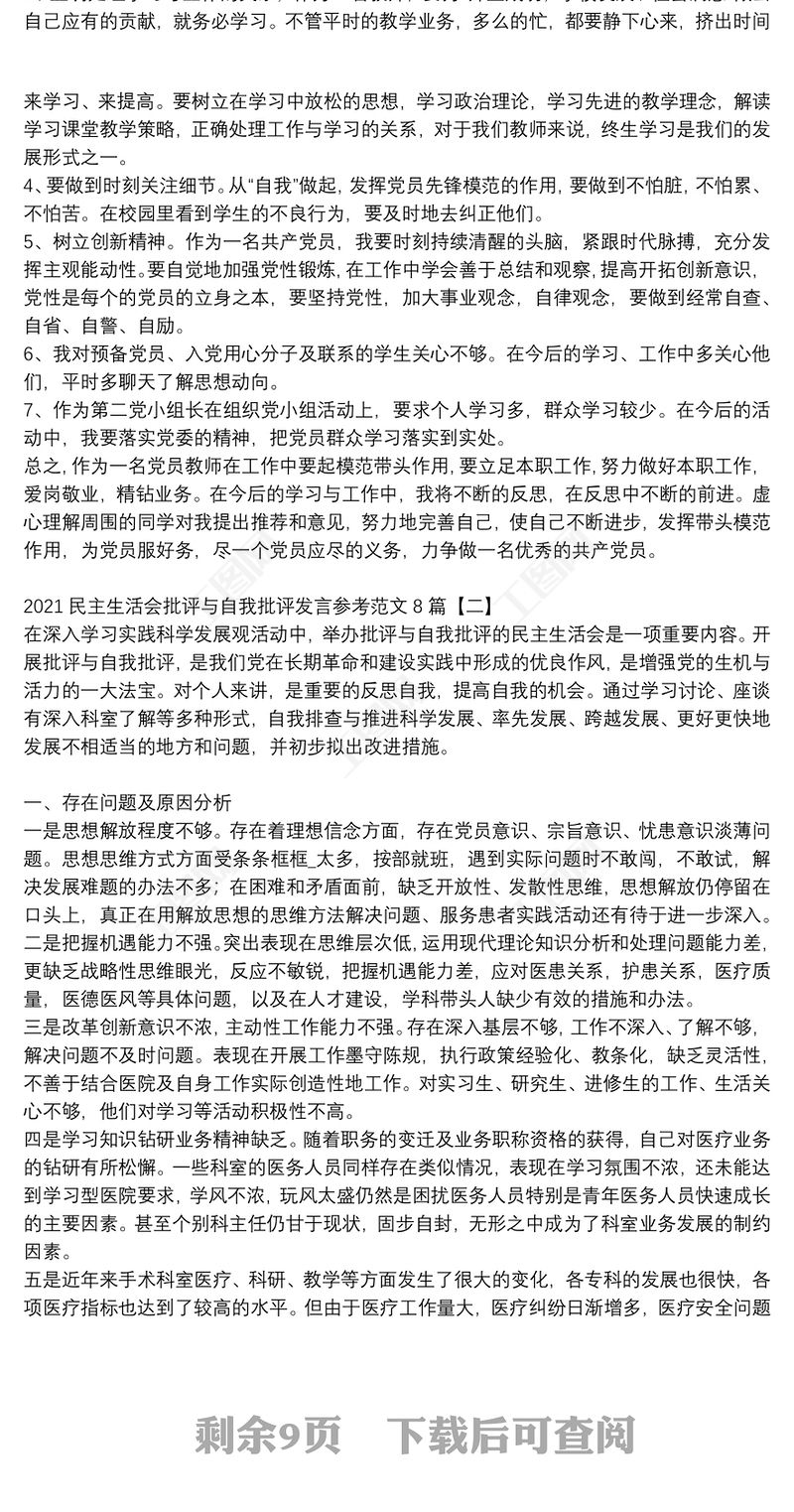2021民主生活會批評與自我批評發(fā)言參考范文8篇 Array