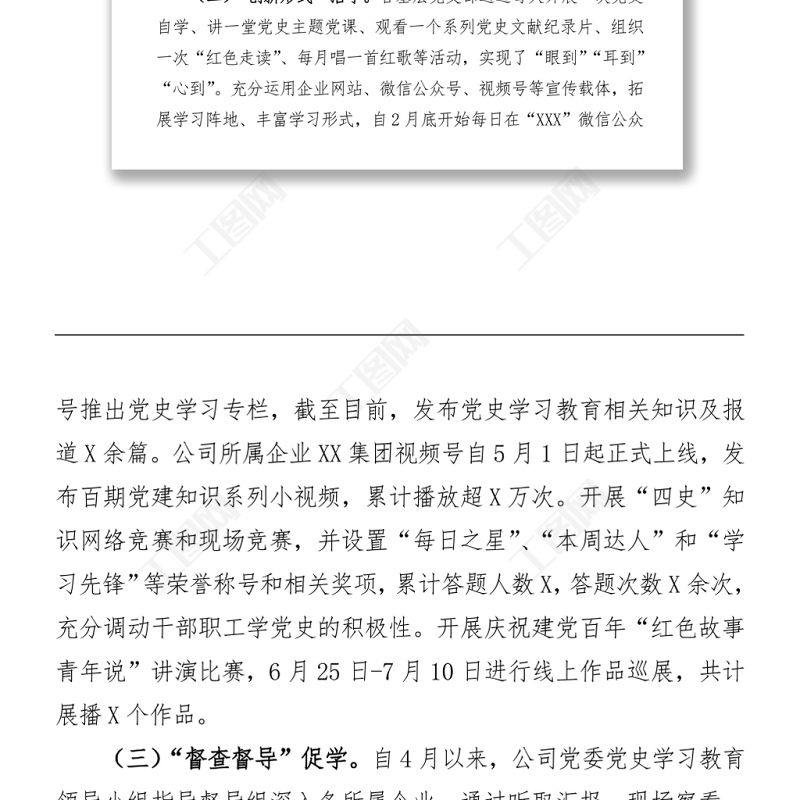 工圖網提供2021集團公司黨史學習教育有關情況匯報供會員免費下載。更多精彩黨課PPT素材,盡在工圖網。