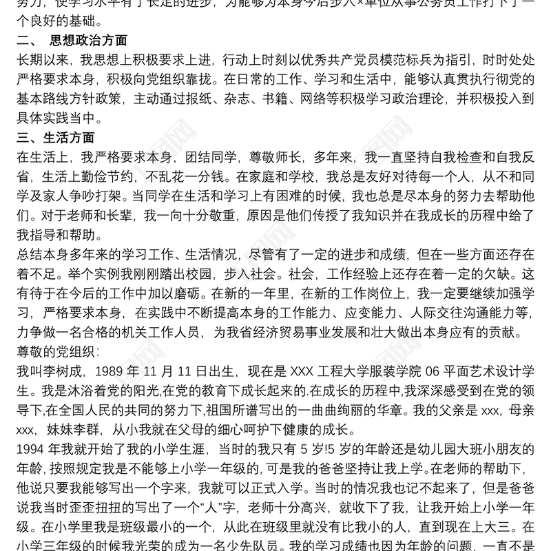 2020入黨積極分子入黨自傳模板 Array