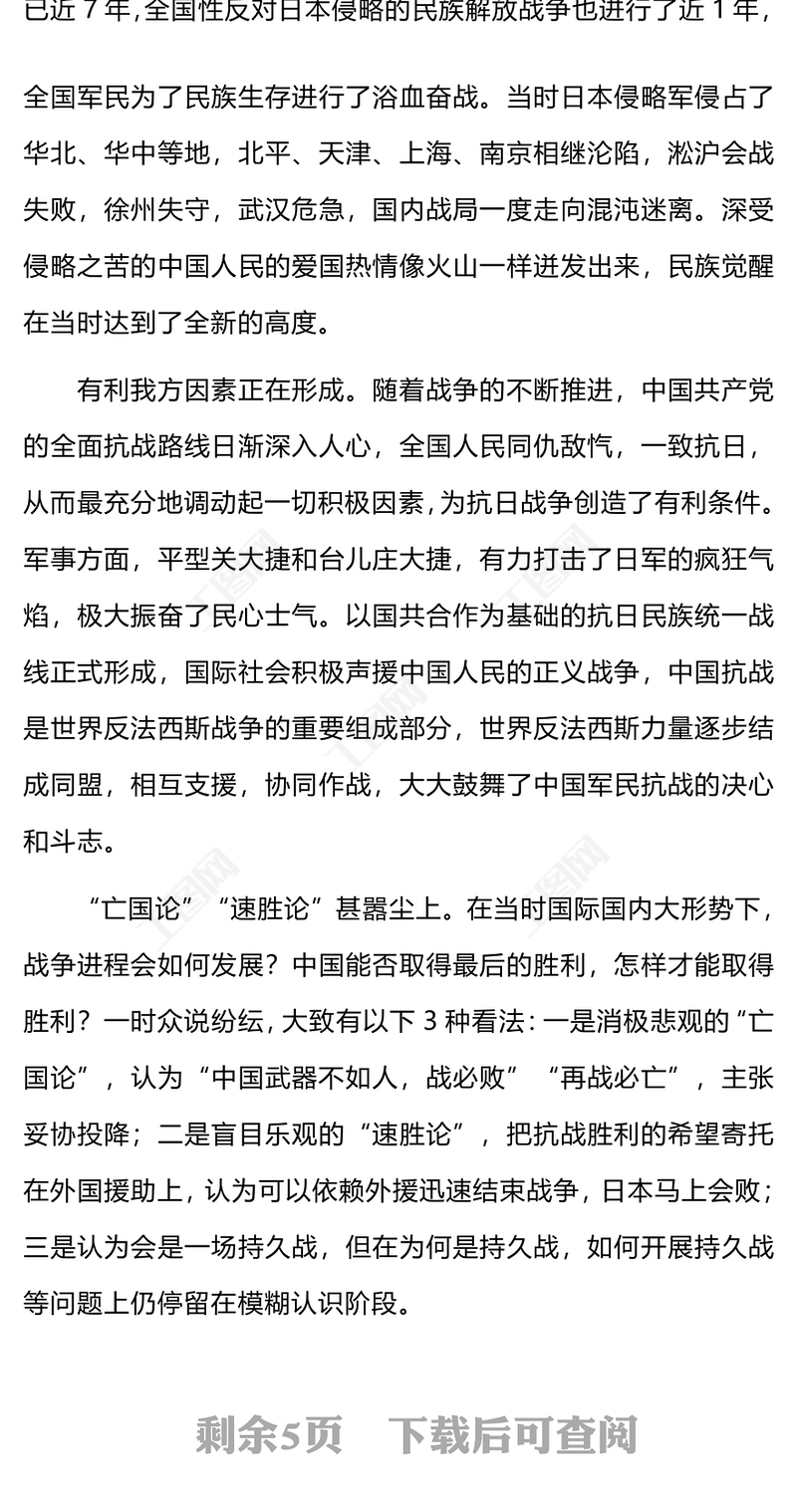 > 黨課講稿 > 論持久戰(zhàn)PPT紅色簡(jiǎn)潔《論持久戰(zhàn)》的時(shí)代背景主要觀點(diǎn)現(xiàn)實(shí)啟示黨課(講稿).DOCX 【圖片、文字、動(dòng)畫均可編輯】