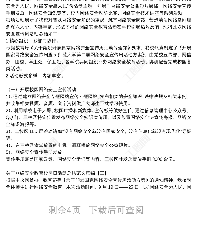 工圖網(wǎng)提供關(guān)于網(wǎng)絡(luò)安全教育校園日活動(dòng)總結(jié)范文集錦供會(huì)員免費(fèi)下載。更多精彩黨課PPT素材,盡在工圖網(wǎng)。