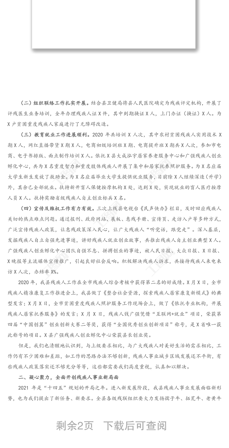工圖網(wǎng)提供殘聯(lián)理事長在全縣殘疾人工作會議上的講話供會員免費(fèi)下載。更多精彩黨課PPT素材,盡在工圖網(wǎng)。