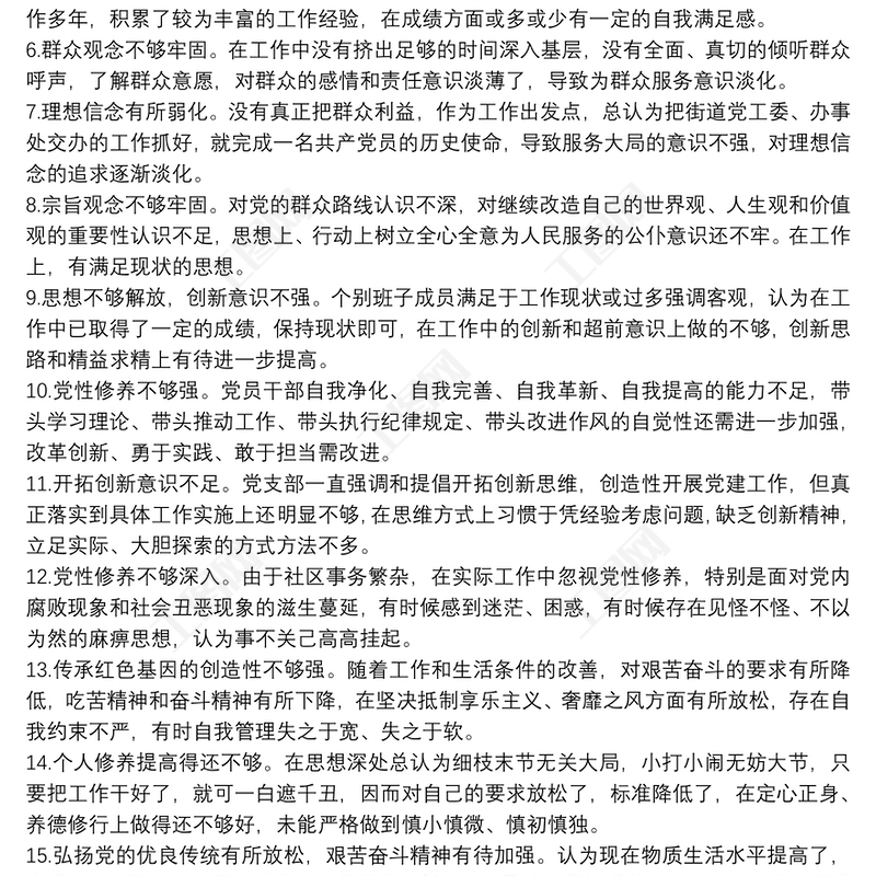民主生活會(huì)對(duì)照檢查存在問題及原因分析100條 Array