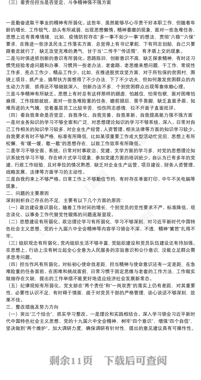 2021XXXX年民主生活會對照檢查材料(對照六個(gè)方面)包含