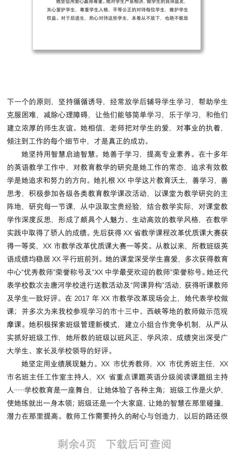 工圖網(wǎng)提供2021優(yōu)秀教師先進(jìn)事跡材料范文(三篇)供會(huì)員免費(fèi)下載。更多精彩黨課PPT素材,盡在工圖網(wǎng)。