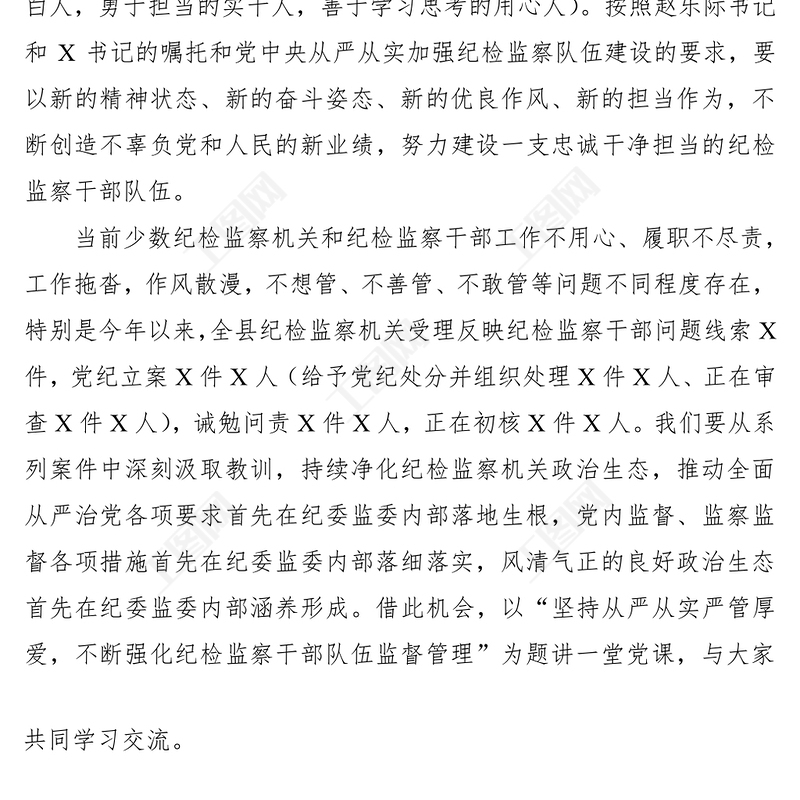 > 公文范文 > 2021紀(jì)檢監(jiān)察機(jī)關(guān)專(zhuān)題黨課:堅(jiān)持從嚴(yán)從實(shí)嚴(yán)管厚愛(ài),不斷強(qiáng)化紀(jì)檢監(jiān)察干部隊(duì)伍監(jiān)督管理.DOCX 【圖片、文字、動(dòng)畫(huà)均可編輯】