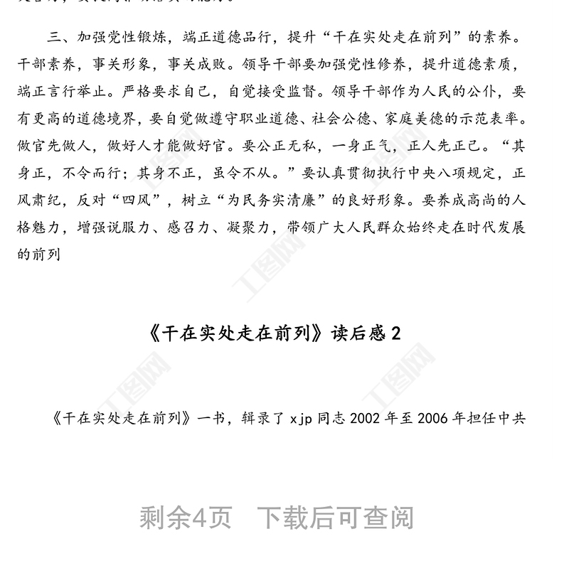 工圖網(wǎng)提供《干在實(shí)處走在前列》讀后感供會(huì)員免費(fèi)下載。更多精彩黨課PPT素材,盡在工圖網(wǎng)。