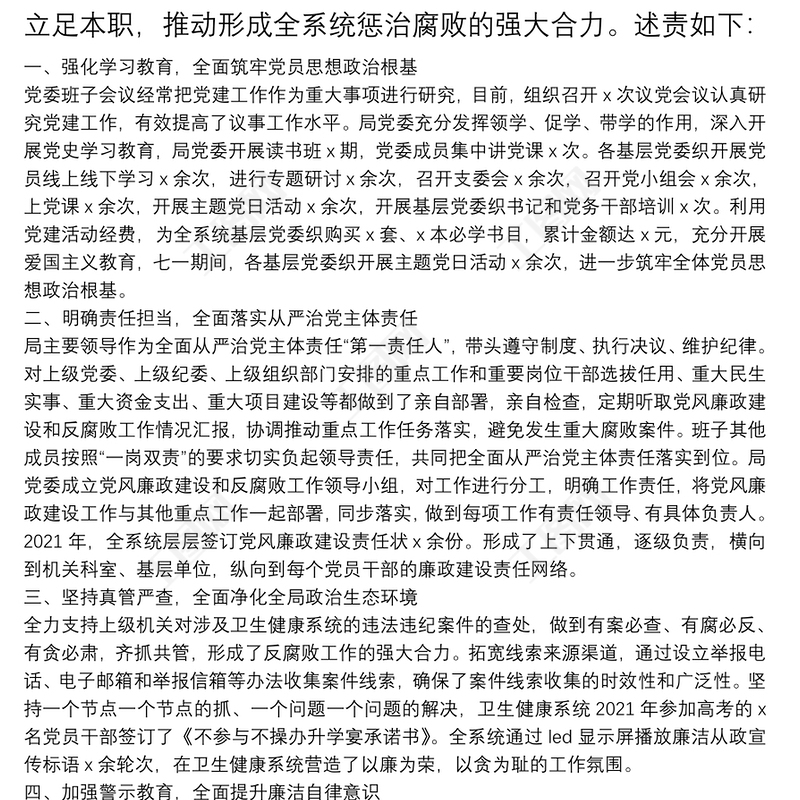 衛(wèi)健局局長述責(zé)述廉報告履行黨風(fēng)廉政建設(shè)和反腐敗工作述責(zé)述廉報告 Array