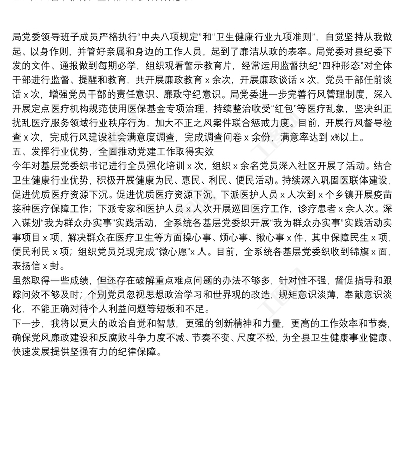 衛(wèi)健局局長述責(zé)述廉報告履行黨風(fēng)廉政建設(shè)和反腐敗工作述責(zé)述廉報告