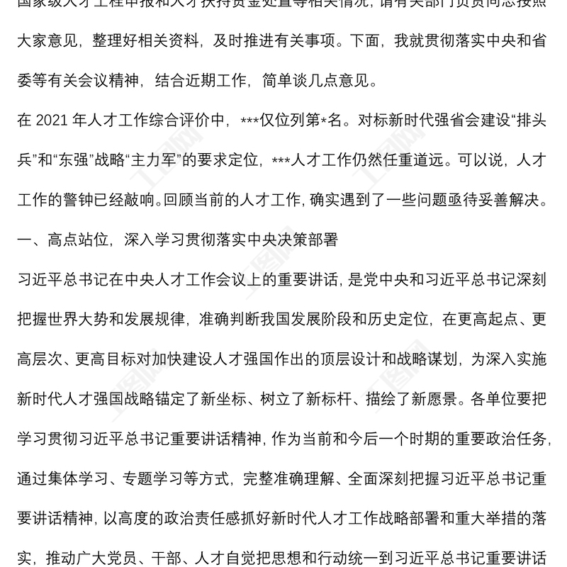 在2021年黨工委人才工作領(lǐng)導(dǎo)小組擴(kuò)大會(huì)議上的講話 Array