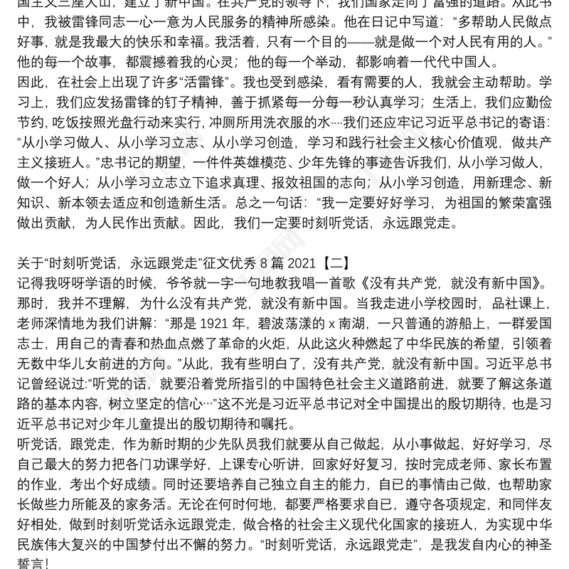 關(guān)于“時刻聽黨話,永遠跟黨走”征文優(yōu)秀8篇2021 Array