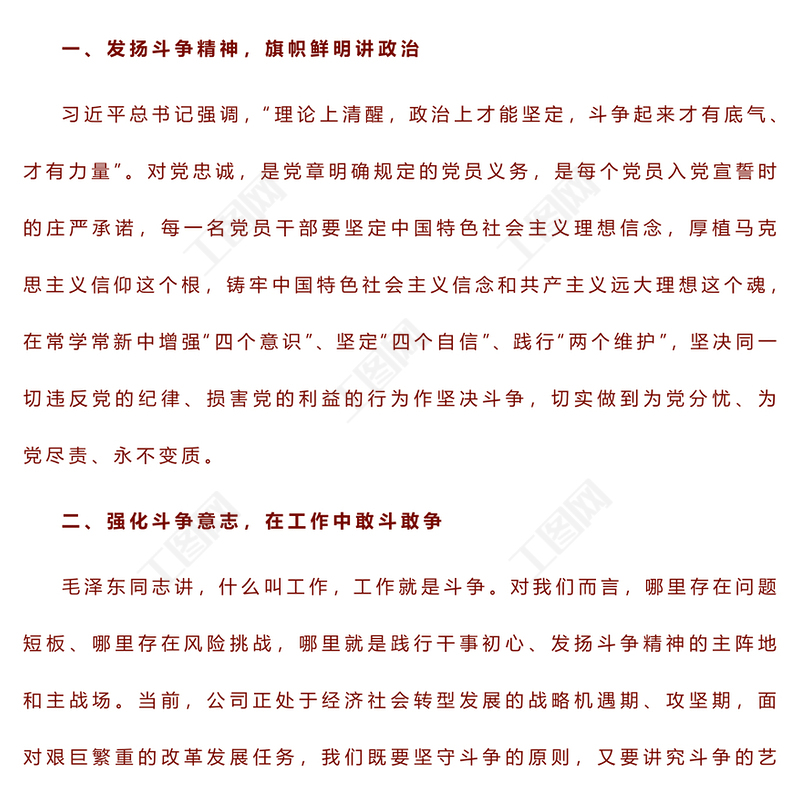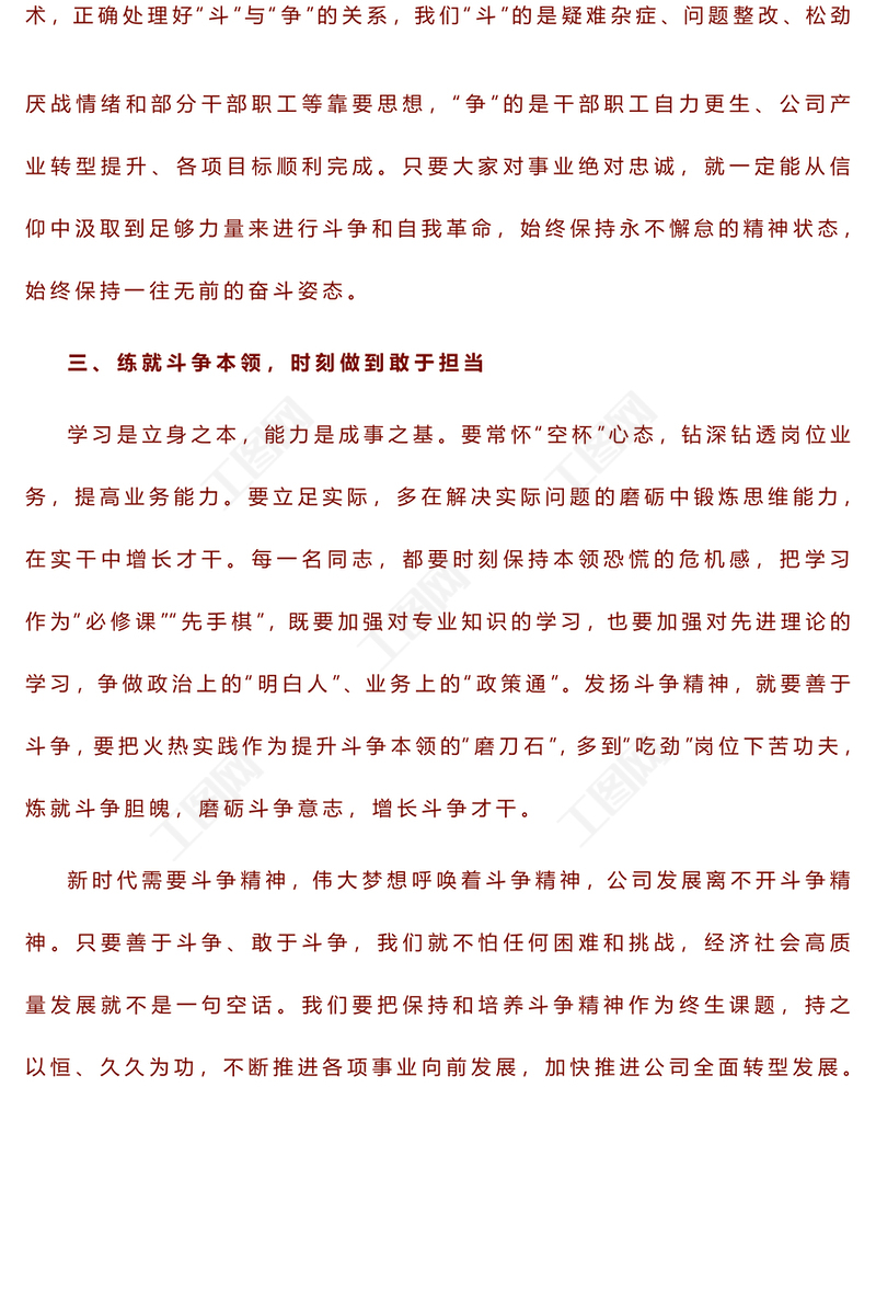 工圖網(wǎng)提供發(fā)揚斗爭精神,推進轉(zhuǎn)型發(fā)展——2023年主題教育讀書班交流發(fā)言稿供會員免費下載。更多精彩黨課PPT素材,盡在工圖網(wǎng)。