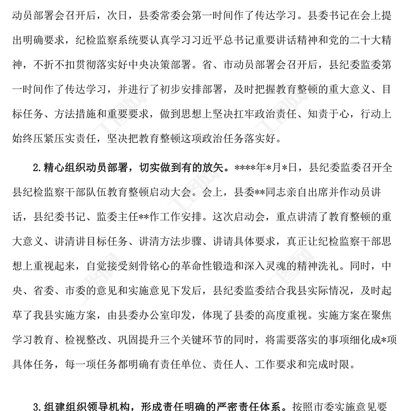 > 述職報(bào)告 > 紀(jì)委監(jiān)委關(guān)于紀(jì)檢監(jiān)察干部隊(duì)伍教育整頓階段性工作總結(jié).DOCX 【圖片、文字、動(dòng)畫均可編輯】